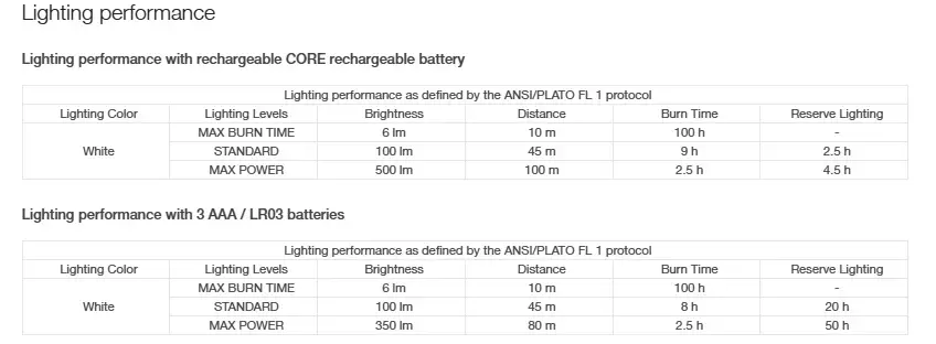 - HYBRID CONCEPT design: IKO® CORE comes with the CORE rechargeable battery and also works with three standard batteries, the lamp detects the energy source and adjusts lighting performance (IKO® CORE with CORE rechargeable battery: 500 lumens; IKO® CORE with standard batteries: 350 lumens)